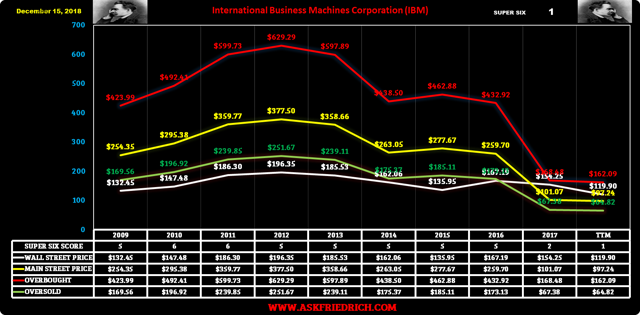We last ran our data file for IBM on December 15, 2018, and our Friedrich Algorithm gave a recommendation to our subscribers that IBM is a "Hold" as our Friedrich Data File and Chart below shows. There you will also find the last ten years of IBM"s Price to Bernhard Buffett Free Cash Flow results.